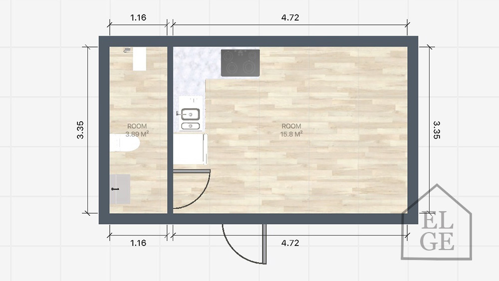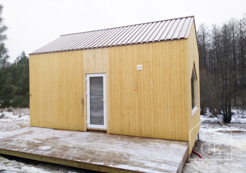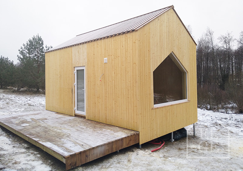Į namelio kainą įskaičiuota: poliniai pamatai, konstrukcija, apšiltinimo medžiagos, lauko ir vidaus apdaila, stogo danga (plieninė skarda), elektros instaliacija, jungikliai, šviestuvai, durys, langai, kondicionierius, vandens šildytuvas. Namelį pastatome nuo pamatų iki rakto atidavimo klientui.