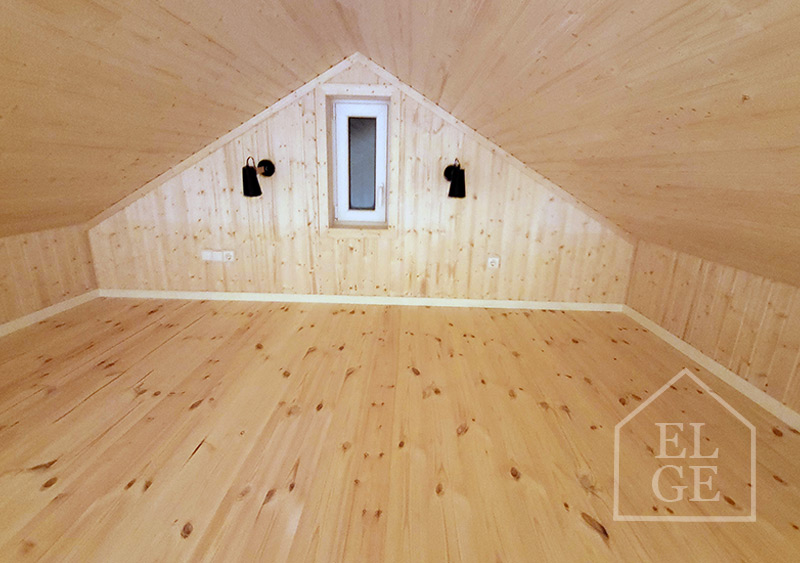 Namelis statomas iš sertifikuotos medienos: konstrukcinė c24, apdailos A,B rūšis. Vidaus apdailai (sienos, lubos) renkamės medžio dailylentes, galimos variacijos eglinės arba pušinės dailylentės (nedažytos). Grindys pušies masyvas.